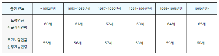 - 조기수령시 연금액이 영구적으로 감소합니다.