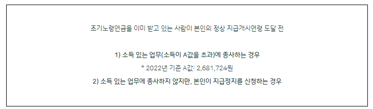 - 소득이 있는 업무에 종사하면 연금 지급이 정지될 수 있습니다.