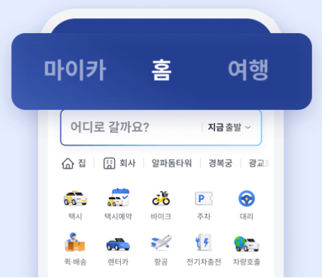카카오 T의 혁신을 통해 모든 이동의 고민으로부터 벗어나 더 편하고, 즐겁고, 가치 있는 일상을 만들어갑니다. 테마 별로 재구성된 홈 상단탭에서 원하는 서비스를 찾아 이용해보세요. • 홈