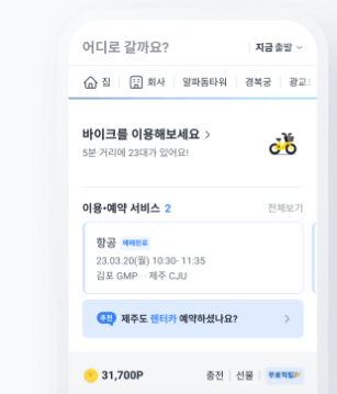 - 카카오 T - 택시, 대리, 주차, 바이크, 항공, 퀵 앱을 찾아 선택합니다.