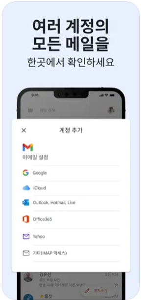 - 여러 계정을 등록하여 개인용과 업무용 이메일을 함께 관리할 수 있습니다.