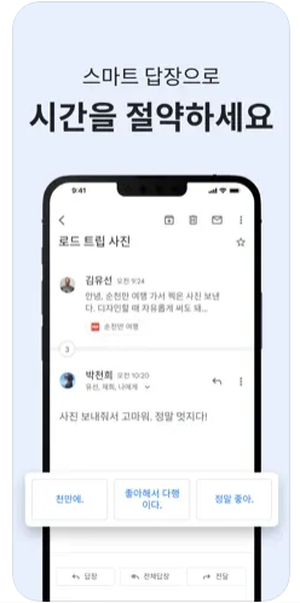 - 푸시 알림 기능으로 새 메일 도착 시 실시간 알림을 받을 수 있습니다.
